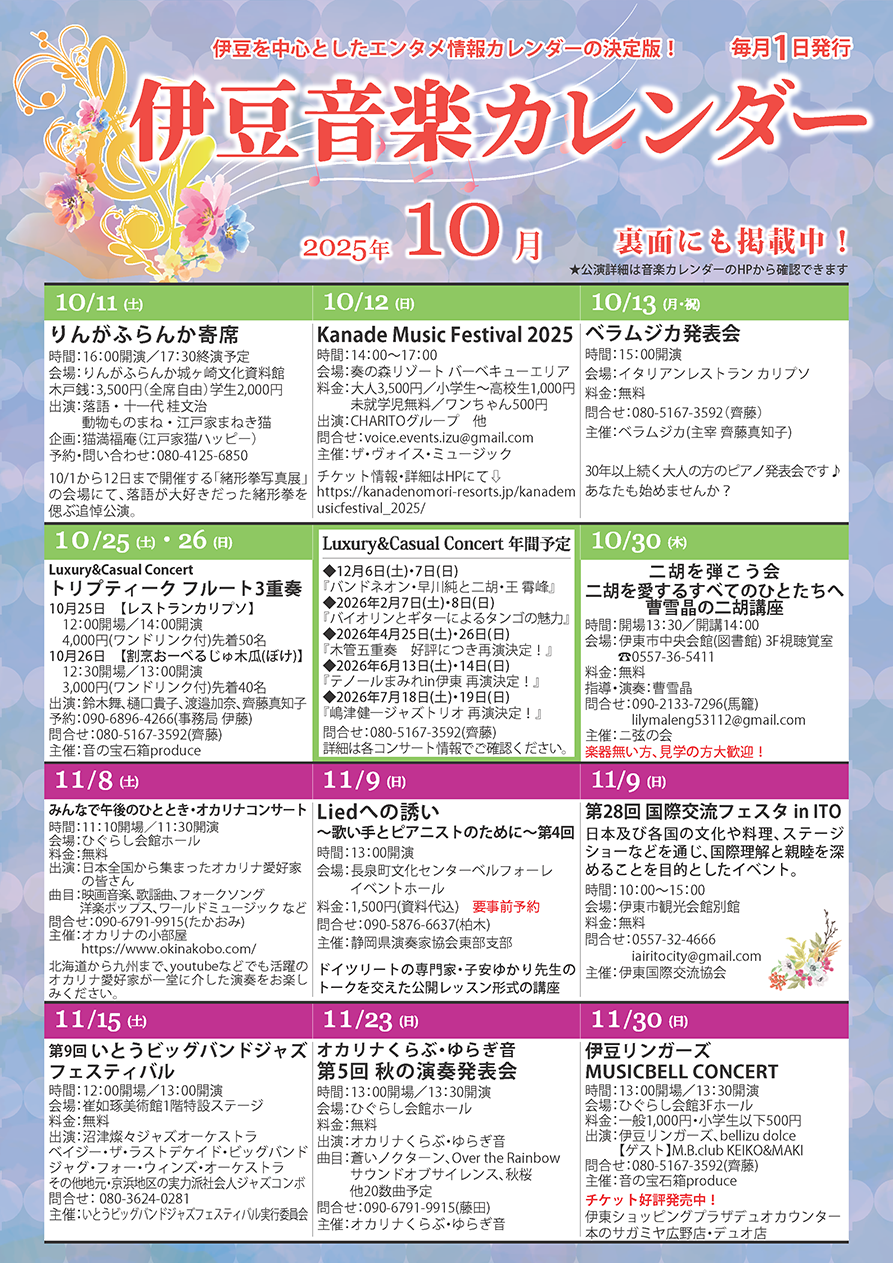 伊豆を中心とした音楽イベントを掲載中!